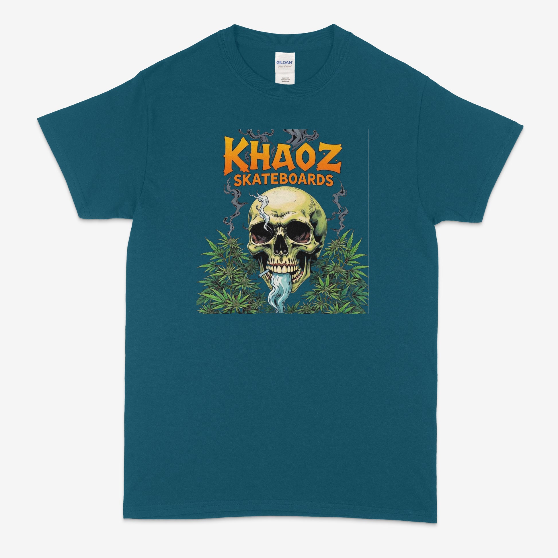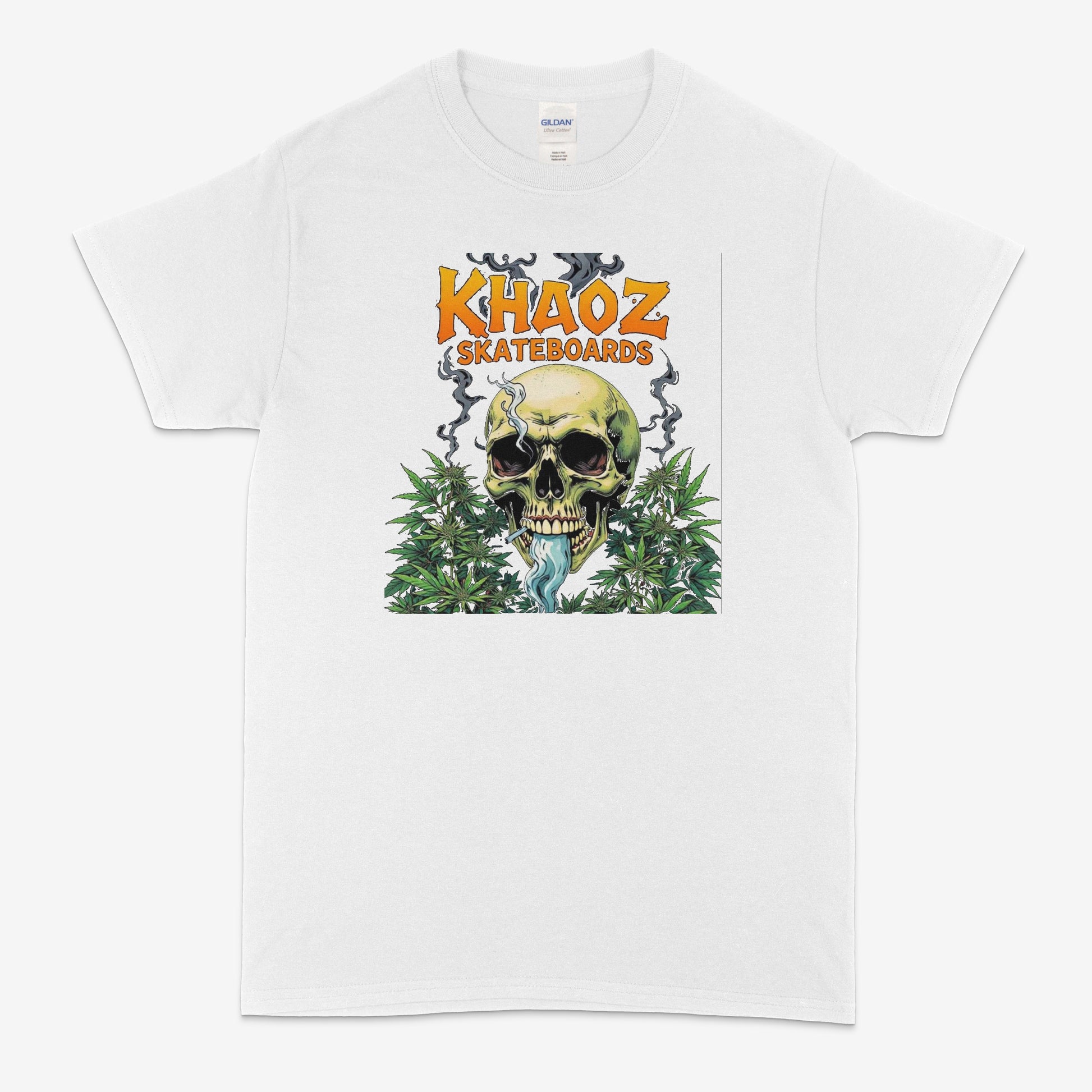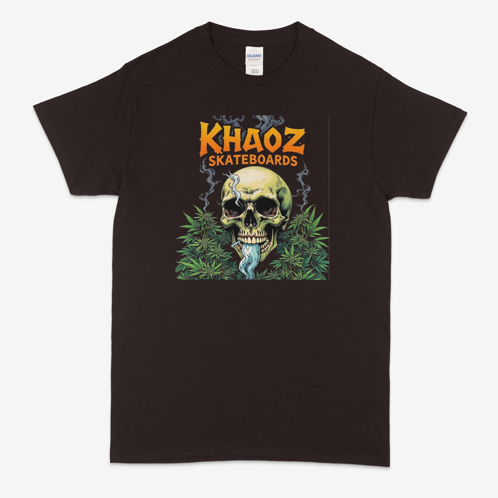 Make a bold statement with the Khaoz Skateboards Skull Tee — where street culture meets underground vibes. This eye-catching graphic t-shirt features a striking skull design surrounded by vivid green leaves and electric smoke, topped with the edgy Khaoz Skateboards logo in fiery orange! Its made for skaters, rebels, and anyone who rides life with no brakes.
