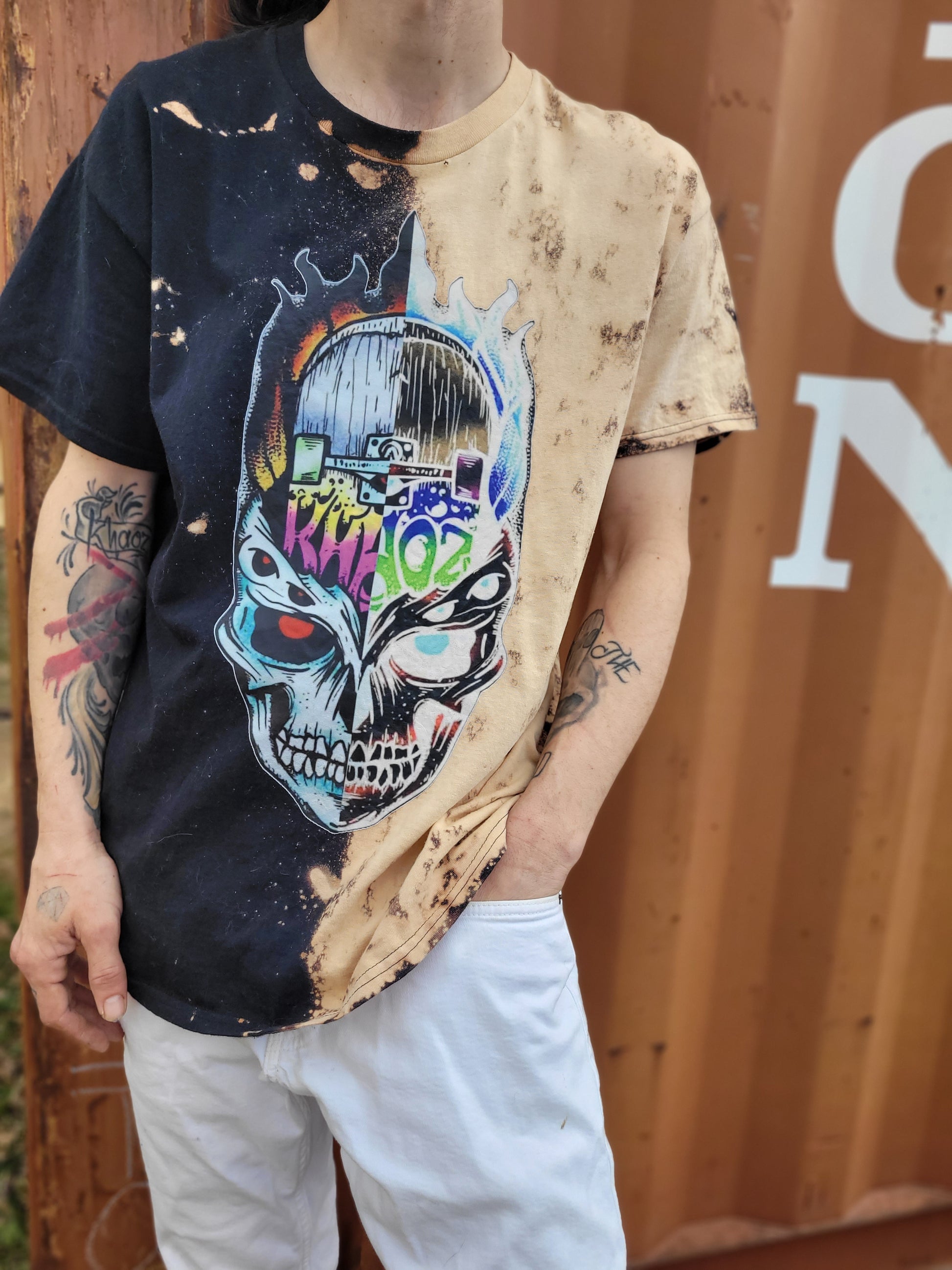 Khaoz Split Skull Tee – Burnt, Bleached & Built for Chaos